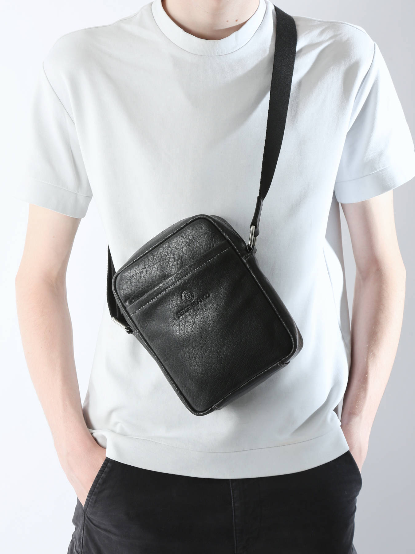The SERGE BLANCO crossbody bag in cowhide leather offers both style and functionality for your daily travels. Its exterior features a front pocket and a back pocket for additional storage, both equipped with a zippered closure ensuring the security of your belongings. The adjustable shoulder strap allows you to adjust it to your liking for comfortable crossbody wear. Inside, you'll find one simple pocket, one zippered pocket, and a spacious main compartment to effectively organize your belongings. Whether for a day in the city or for a getaway, this cowhide leather SERGE BLANCO crossbody bag is an elegant and practical choice.