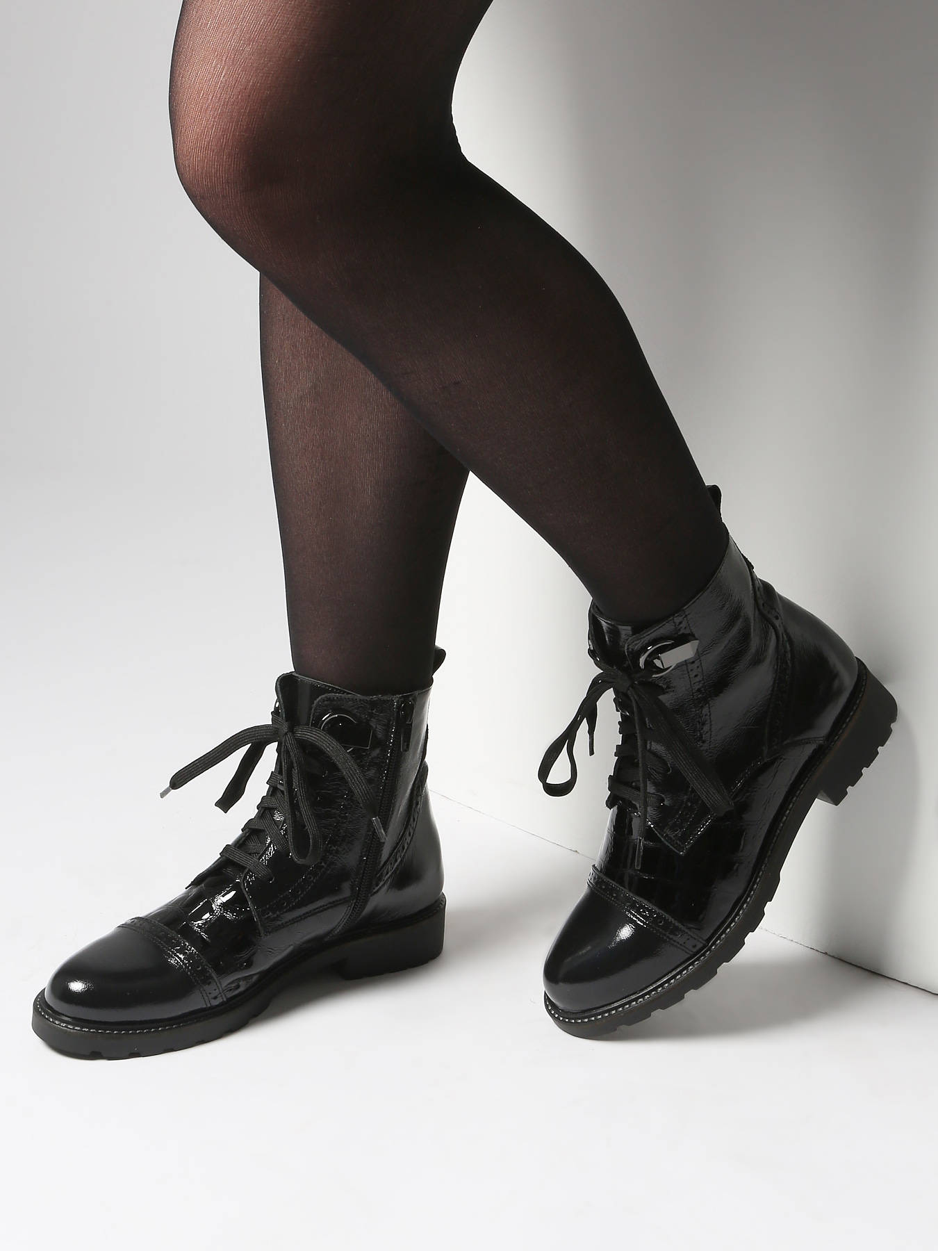 The black patent Croco ankle boots by MYMA combine boldness and sophistication. Crafted from patent leather with an elegant croco effect, they offer a polished, structured look. The mixed lace and zip closure ensures a perfect fit and easy wear, while the 3 cm ridged outsole provides comfort and stability. Fully leather-lined with a leather insole, they guarantee quality and durability. A chic, confident design, perfect for a modern urban style.