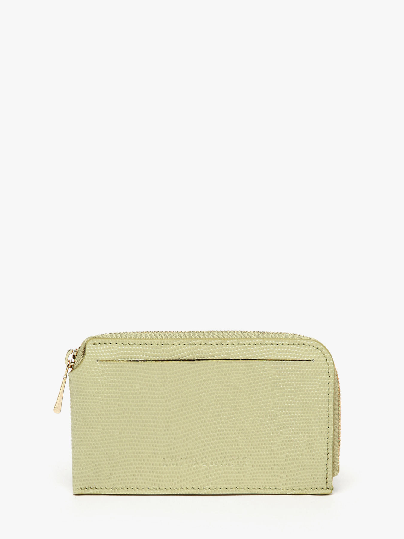 The Longchamp Pocket card holder, crafted from lizard-embossed cowhide leather, brings refined elegance and a contemporary touch to your everyday essentials. Compact yet highly functional, it features a secure zip closure, an exterior flat pocket, four card slots and a practical coin compartment. Pale gold metallic finishes enhance its sophisticated look, while the embossed Longchamp logo on the front adds a timeless and iconic signature. Designed to suit every lifestyle, the Longchamp Pocket line ranges from card holders to wallets, coin purses and pouches. Easy to slip into a pocket, a bag or wear as a charm, it comes in croco-effect leathers in neutral shades for a chic allure, or playful two-tone designs with harmonious contrasts for a dynamic style.