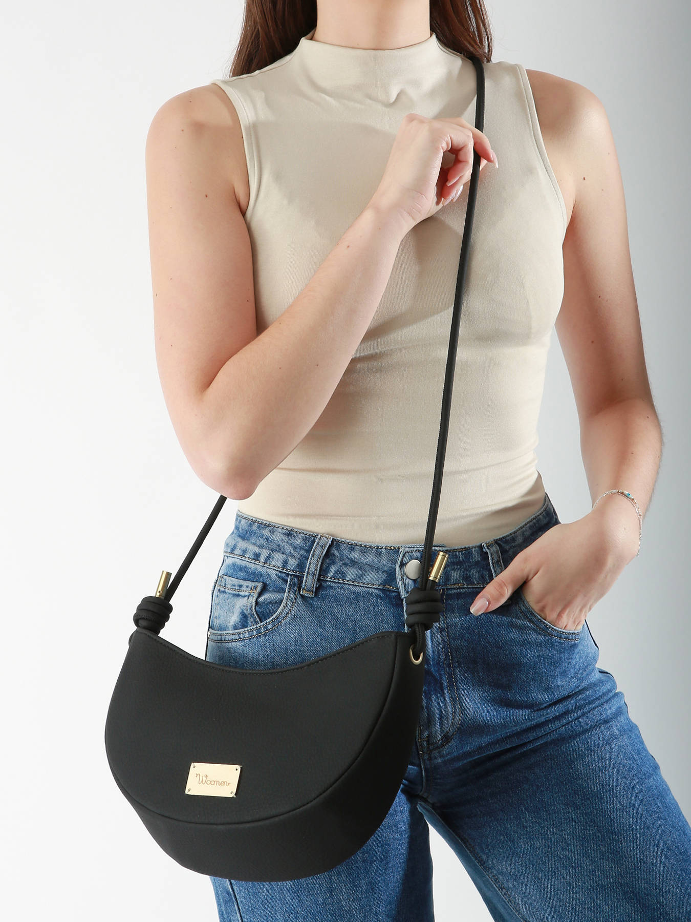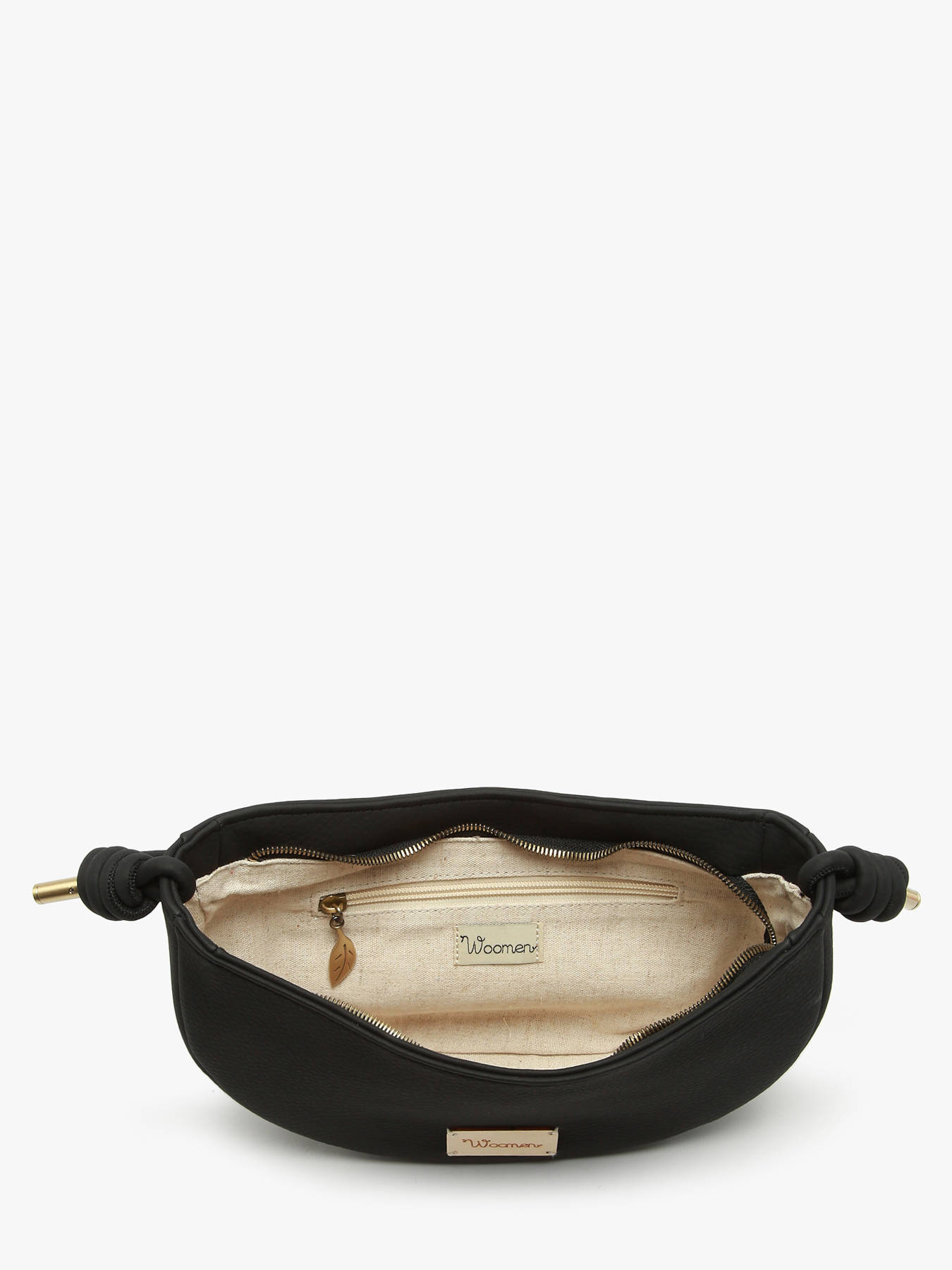 The WOOMEN crossbody bag from the MUSCARI line, made of recycled polyurethane with a cotton and linen lining, features a new crossbody design with sliding knots. It closes with a zip and includes an adjustable strap, as well as a single compartment with a quick-access pocket for practical organization.