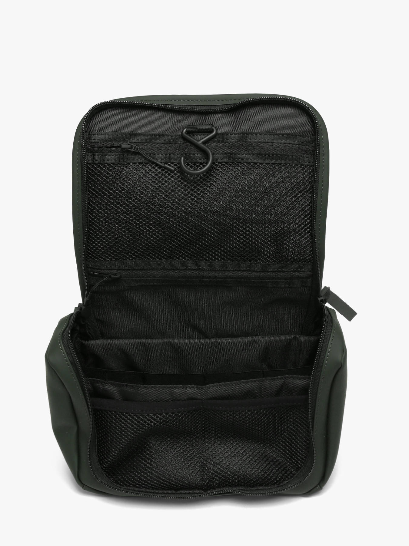 The RAINS toiletry bag in polyester combines functionality with a minimalist design, making it perfect for travel. Featuring a practical carry handle, it can be easily transported by hand or slipped into a travel bag. Its well-organized interior includes four slip pockets and two zip pockets, allowing efficient storage of your toiletries and daily essentials. Lightweight and durable, it is ideal for trips, weekends, or everyday use. The polyester material ensures resistance and helps protect your belongings from moisture. With its clean and modern design, true to the RAINS aesthetic, this toiletry bag blends style and practicality. An essential accessory for keeping your items neatly organized at home or on the go.
